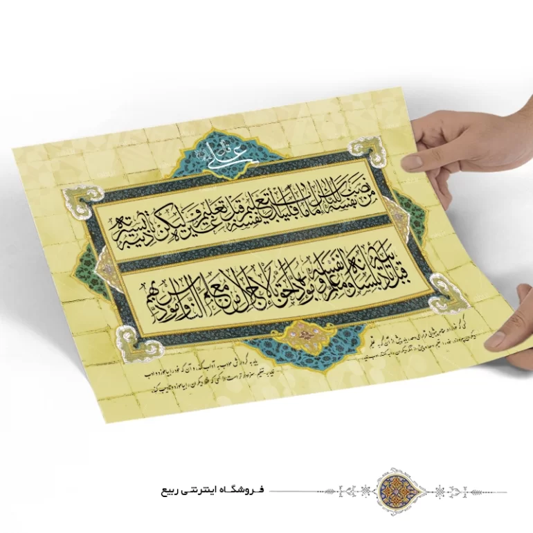 این پوستر زیبا از مواد اولیه بسیار باکیفیت و در لابراتوار پیشرفته تولید می شود. طرح چاپ شده روی پوستر از کیفیت رنگی و وضوح بالایی برخوردار است و یک لایه روکش محافظ مخصوص جهت ماندگاری روی آن قرار دارد. نصب این پوستر روی انواع سطوح افقی و عمودی بسیار آسان بوده و با انواع چسب نواری، منگنه و پونز قابل انجام است.
