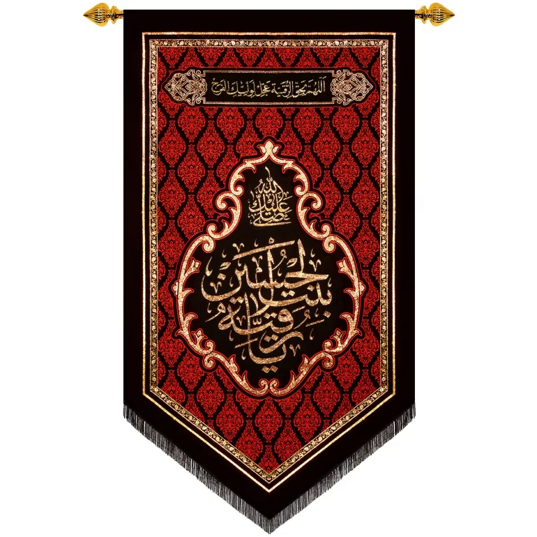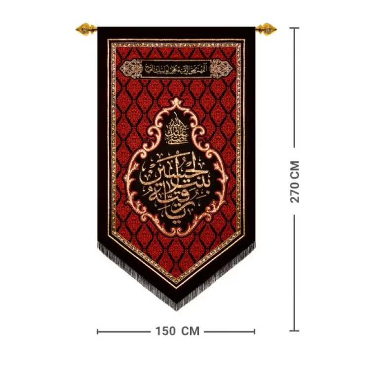 این پلاکارد مذهبی، از بهترین نخ ترگال و زر تولید شده و دارای ریشه دوزی می باشد. طرح روی این پلاکارد زیر نظر هنرمندان اصفهانی بافته شده که از کیفیت و طول عمر بالایی برخوردار است. جنس میله به کار رفته در بالای این پلاکارد، پلاستیک است که باعث انسجام آن می‌شود و در عین حال به پارچه آسیب نمیرساند. این محصول برای استفاده در منزل، محل کار و هیئت ها مناسب می باشد.