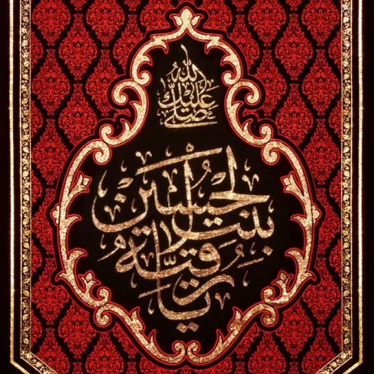 پلاکارد آویزی زربافت طرح صلی الله علیک یا رقیه بنت الحسین کد 239