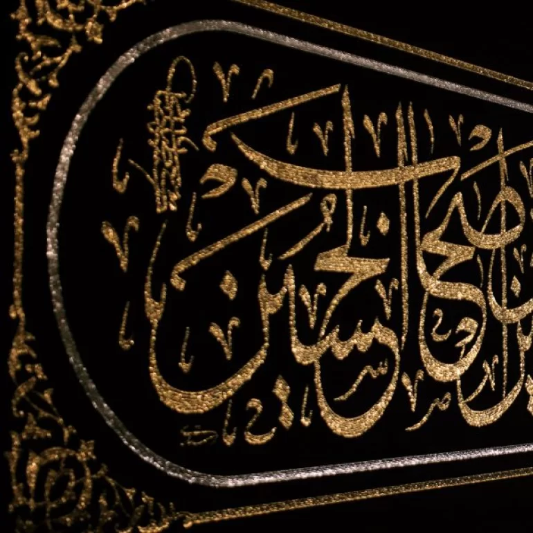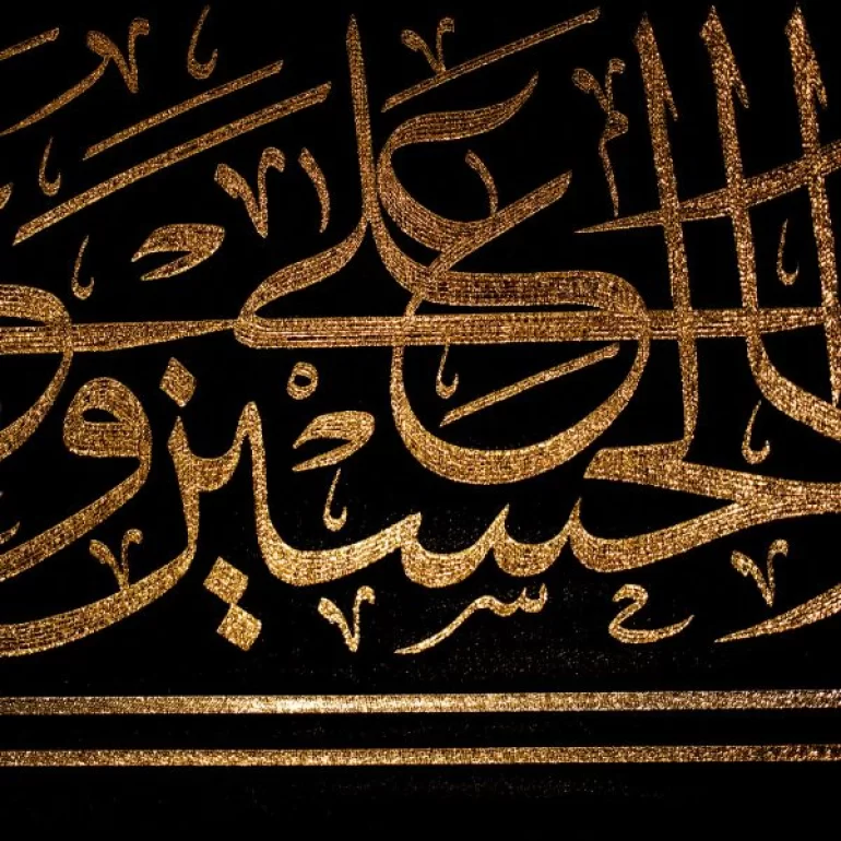 کتیبه زربافت طرح اللهم العن قتله الحسین علیه السلام کد 408