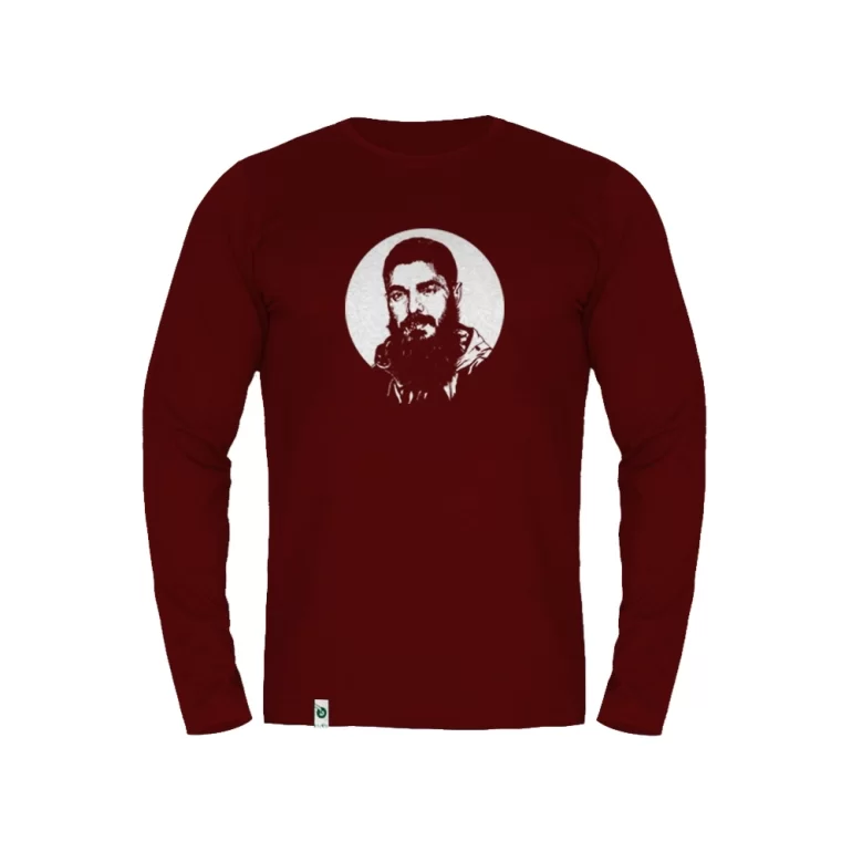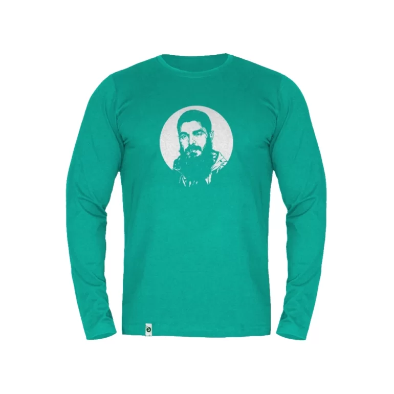 تیشرت مردانه نقش خورشید، از نوع آستین بلند بوده و جنس پارچه آن فانریپ است. یقه لباس به صورت گرد بوده و طرح چهره «شهید ابراهیم هادی» به روش چاپ ژلاتین روی پارچه این محصول نقش بسته است. این تیشرت چهار فصل برای استفاده روزانه کاملا مناسب می باشد.