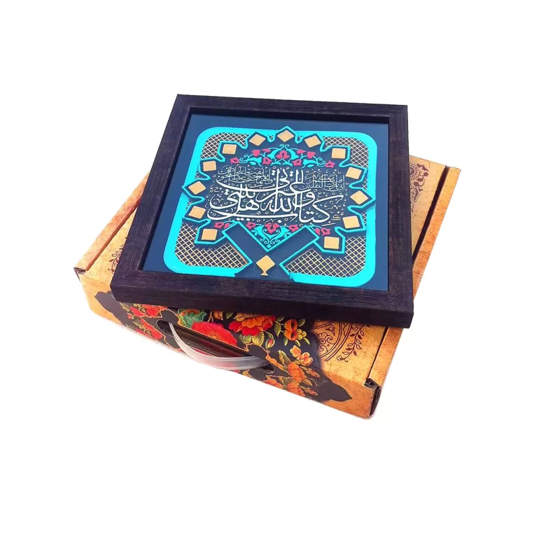 تابلو سفالی نقش برجسته طرح حدیث ثقلین، تابلویی نفیس و ماندگار در ابعاد 3×26×26 سانتی‌متر می باشد. تمام نقوش این تابلو، برجسته بوده و همه مراحل آن به ویژه رنگ آمیزی و لعابکاری توسط دست انجام شده است. این محصول دارای جعبه مقوایی مقاوم می باشد که به شکل یک ساک دستی با طرح های سنتی بوده و مناسب هدیه دادن است.