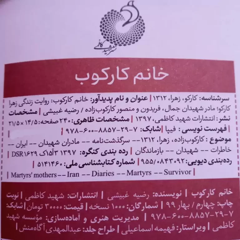 کتاب «خانم کارکوب» نوشته رضیه غبیشی، زندگی پر فراز و نشیب زهرا کارکوب‌زاده، مادر سه شهید و دو جانباز جنگ تحمیلی را در 256 صفحه روایت می‌کند. این اثر در پنج فصل، داستانی از صبر، ایثار و فداکاری‌های بی‌نظیر او را به تصویر می‌کشد. با استفاده از خاطرات خود زهرا کارکوب و خانواده‌اش، کتاب عمق عشق و فداکاری را در دوران جنگ و پس از آن نشان می‌دهد.