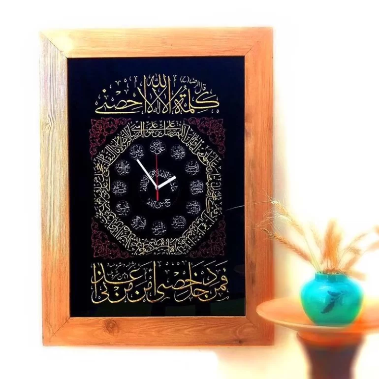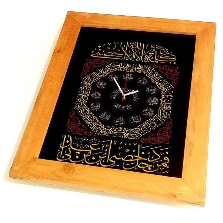 تابلو پرچم دوزی ساعت طرح صلوات خاصه امام رضا علیه السلام