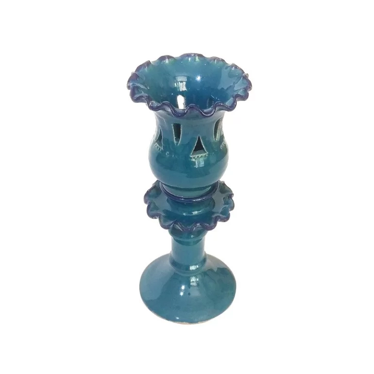 شمعدان لاله سفالی دو تکه سنتی و بسیار زیبا به رنگ فیروزه ای و روکش لعابی می باشد که بیشتر جنبه دکوری و تزئینی دارد.