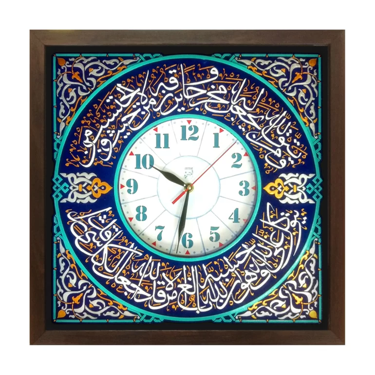 تابلو سفالی نقش برجسته طرح ساعت و آیه راه نجات، تابلویی نفیس و ماندگار در ابعاد 5×43×43 سانتیمتر می باشد. تمام نقوش این تابلو، برجسته بوده و همه مراحل آن به ویژه رنگ آمیزی و لعابکاری توسط دست انجام شده است. این محصول دارای جعبه مقوایی مقاوم می باشد که به شکل یک ساک دستی با طرح های سنتی بوده و مناسب هدیه دادن است.
