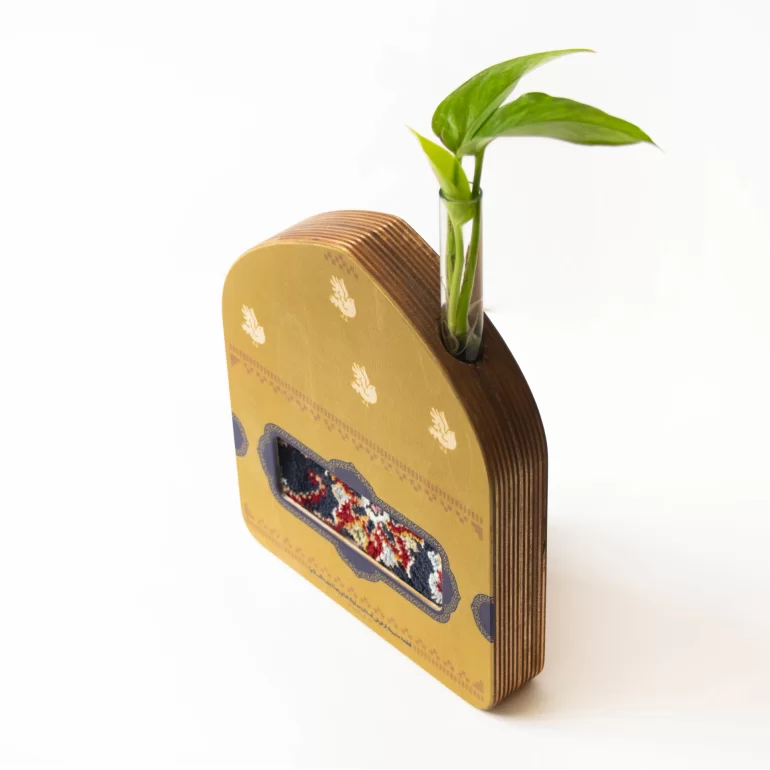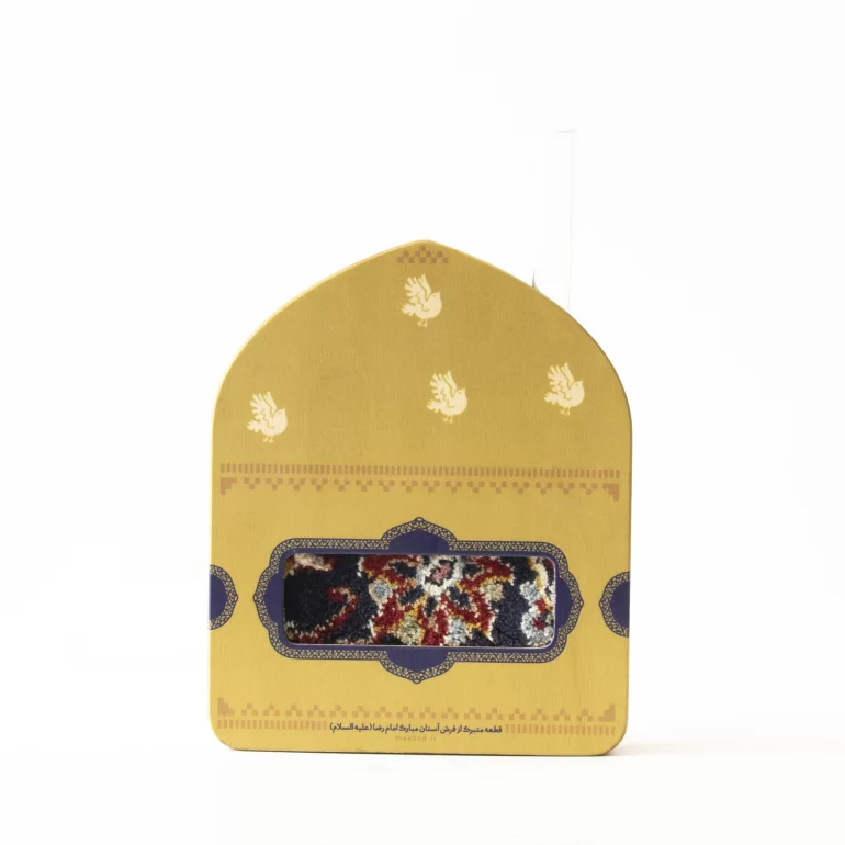 قاب‌فرش «آستان» با الهام از گنبد حرم امام رضا علیه‌السلام و به‌دست آقای سید احمد باقریان طراحی شده است. این قاب از جنس چوب پلای‌وود است و طرح و نقش‌ها به‌روش فلت‌پد روی آن چاپ شده است. اندازۀ این قاب 18 در 22 سانتی‌متر و قطرش 4 سانتی‌متر است. در میانۀ این قاب قطعه‌ای از فرش متبرک آستان امام رضا علیه‌السلام گذاشته شده است.