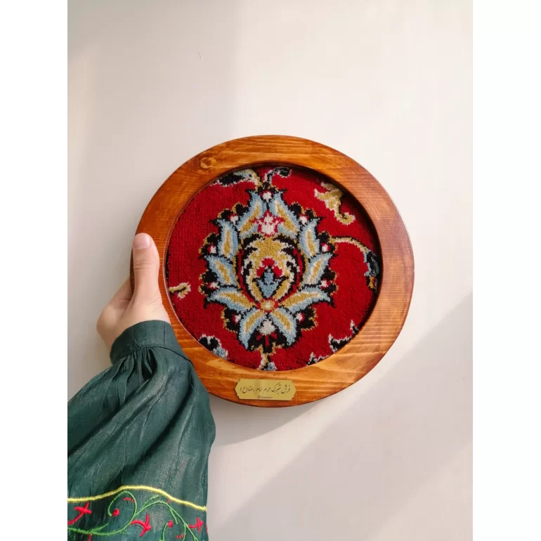 قاب فرش حرم امام رضا(ع) با نام هنری آذین که میتواند هر محیطی را دلنشین تر و فضا را با عطر حرم ملکوتی امام هشتم روح بخشد. این قاب به صورت دایره و با قطر 30 سانتی متر میباشد. جنس این قاب چوبی است و مدل فرش آن مطابق با عکسی که در حال نمایش است نخواهد بود و به صورت گوناگون عرضه خواهد شد.
