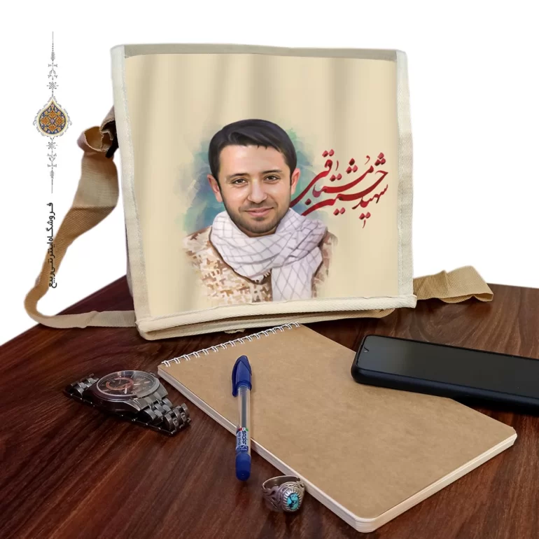 کیف دوشی برزنتی با طرح شهید حسین مشتاقی