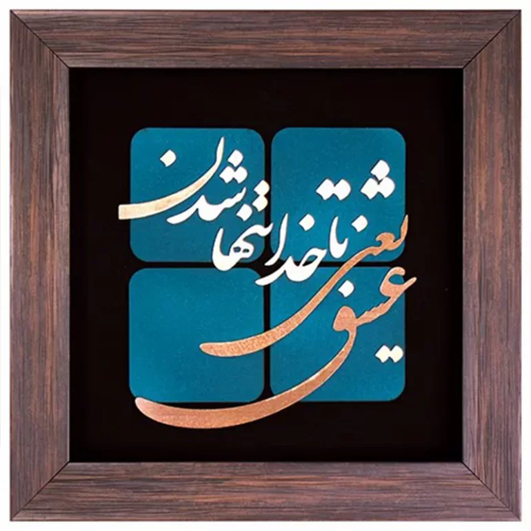 تابلو معرق مس “عشق یعنی با خدا تنها شدن”: نغمه‌ای از عشق و عرفان در قاب هنر ایرانی