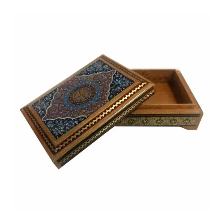 جعبه خاتم، در ابعاد 3*11*8 سانتی متر و با وزن 100 گرم می‌باشد. این جعبه، توسط هنرمندان اصفهان ساخته و پرداخته شده و به لحاظ کیفیت، کالایی ارزشمند و نفیس خواهد بود. توجه داشته باشید که شستن این جعبه فقط با دستمال خشک صورت می‌گیرد.