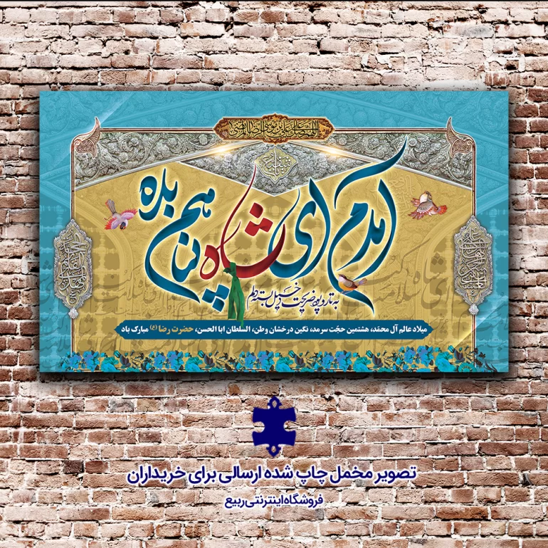 این کتیبه مذهبی، از بهترین پارچه مخمل تولید شده و دارای ریشه دوزی می باشد. طرح «آمدم ای شاه پناهم بده» به روش چاپ سابلیمیشن روی این کتیبه نقش بسته است که دارای کیفیت و جزئیات بالایی است. این کتیبه نفیس برای استفاده در هیئت، منزل و محل کار مناسب می باشد.