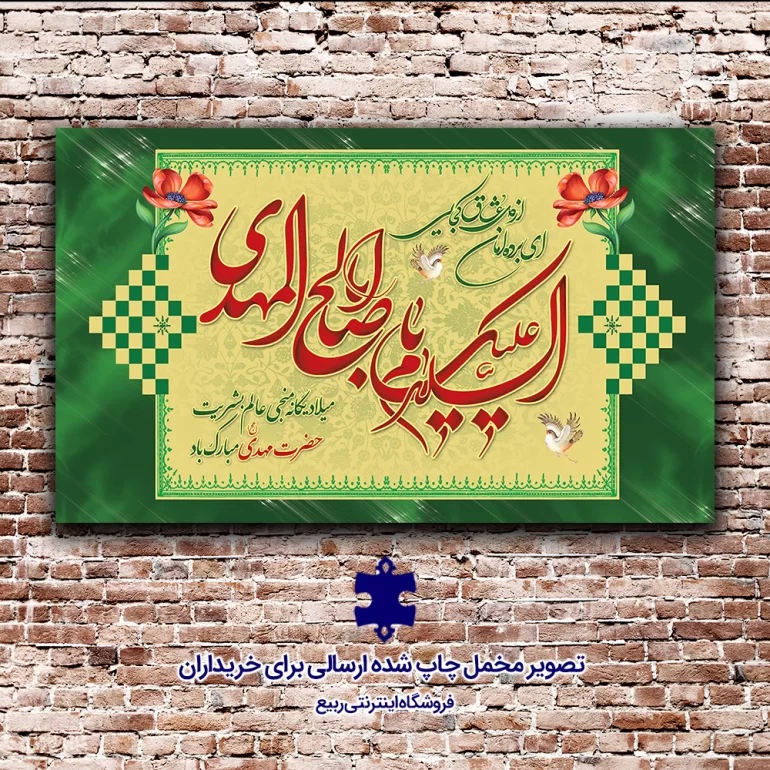 این کتیبه مذهبی، از بهترین پارچه مخمل تولید شده و دارای ریشه دوزی می باشد. طرح «السلام علیک یا ابا صالح المهدی (عج)» به روش چاپ سابلیمیشن روی این کتیبه نقش بسته است که دارای کیفیت و جزئیات بالایی است. این کتیبه نفیس برای استفاده در هیئت، منزل و محل کار مناسب می باشد.