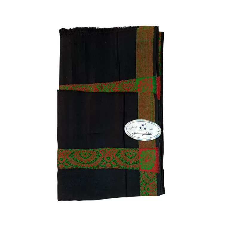 شال کشمیری رنگ مشکی طرح برگ