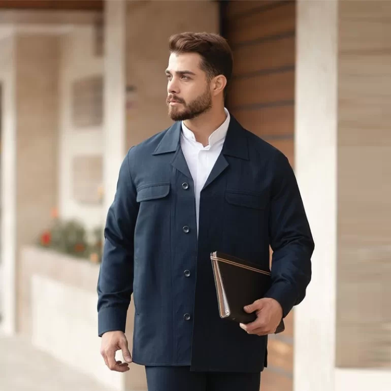 طراحی چهار جیب کاربردی: شامل دو جیب پاکتی روی سینه و دو جیب از بغل که هم جنبهی زیبایی دارند و هم کارایی بالایی برای استفاده روزمره فراهم میکنند.
