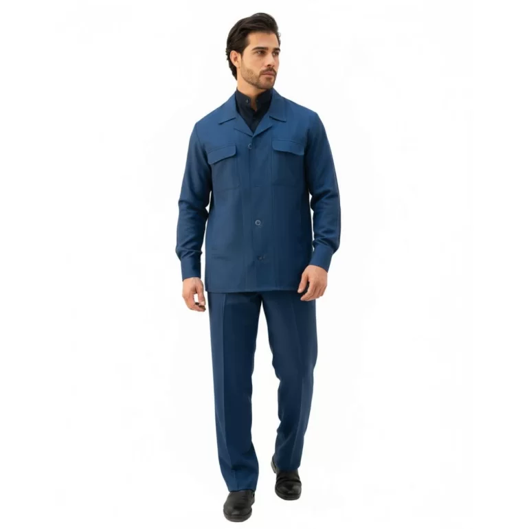 کت و شلوار لبنانی مدل چهار جیب رنگ آبی کاربنی کد 907