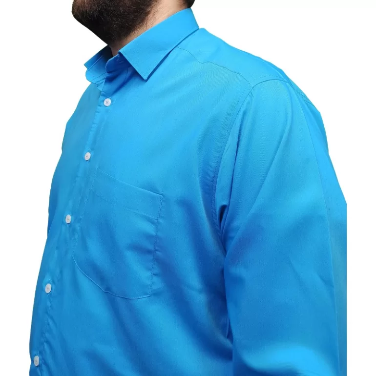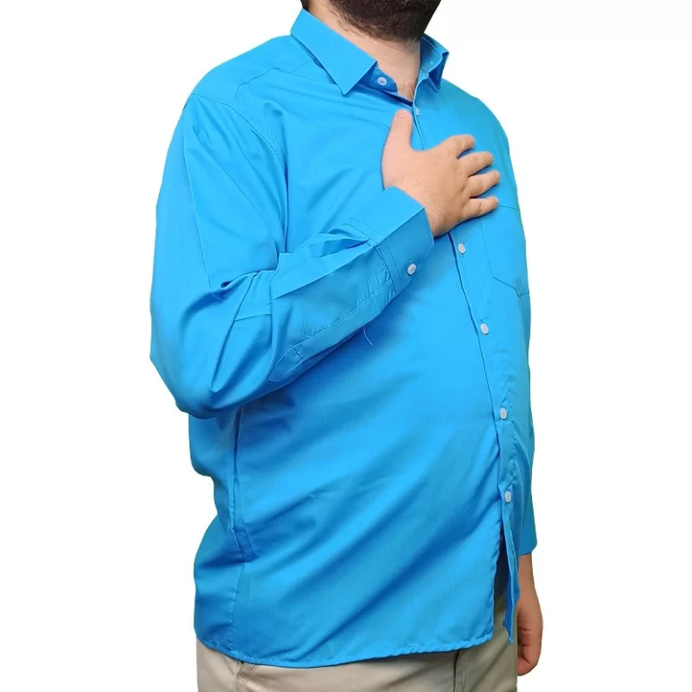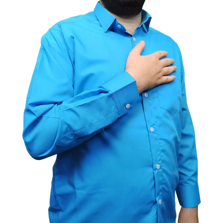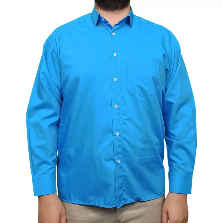 پیراهن مردانه آستین بلند مدل یقه معمولی کلاسیک رنگ فیروزه ای