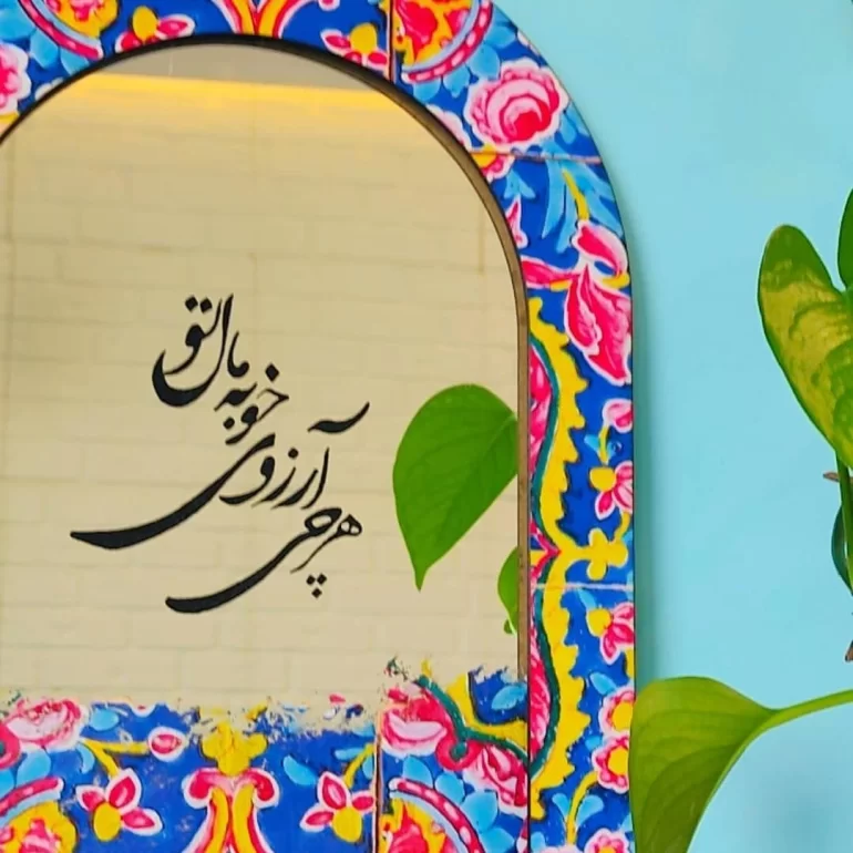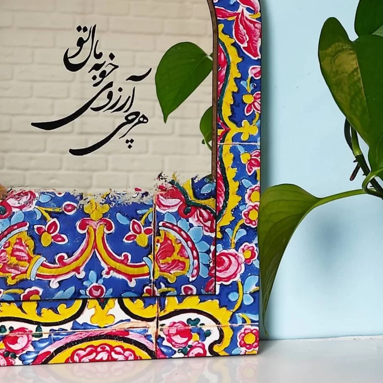 آینه با شعر هر چی آرزوی خوبه مال تو؛ محصولی بسیار شیک و زیبا است که برای دکور و تزئین خانه یا محل کارتان مناسب می‌باشد. ابعاد این آینه 40*30 سانتی‌متر است.