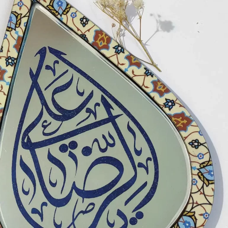 آینه آنتیک طرح اشک با ذکر یا علی الرضا