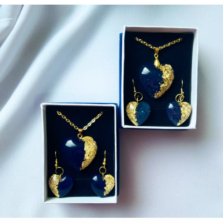 نیم ست رزینی قلب آبی مات و اکلیلی