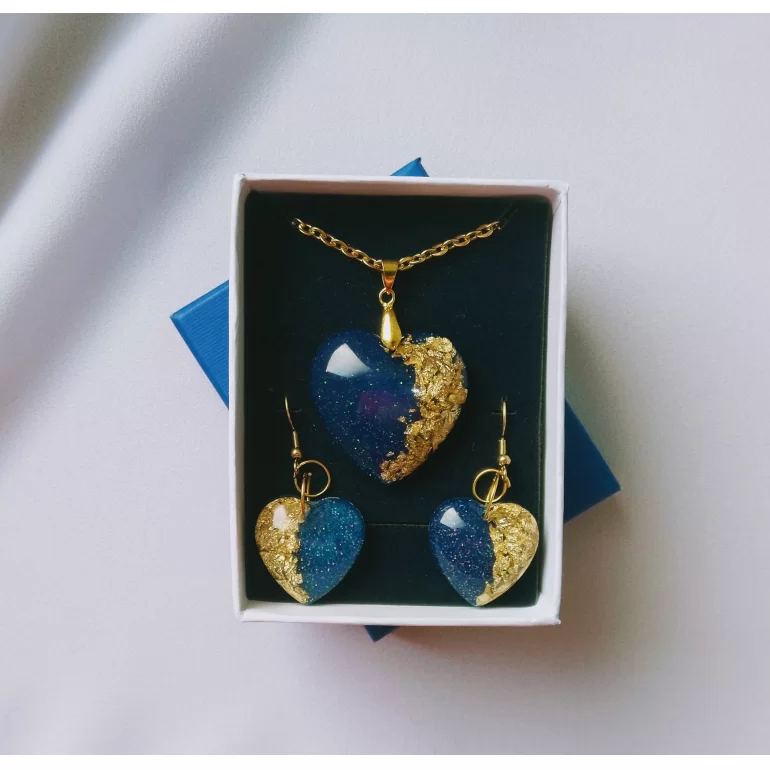 نیم ست رزینی دخترانه قلب آبی،  سبک و راحت