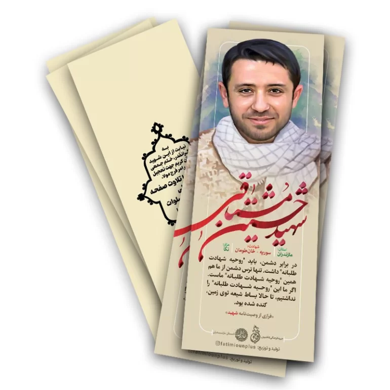 پشت این برچسب به نیابت از این شهید گرانقدر ختم قرآن گروهی چاپ شده است که شما با خرید این می‌توانید محصول در این ختم گروهی مشارکت می‌کنید.