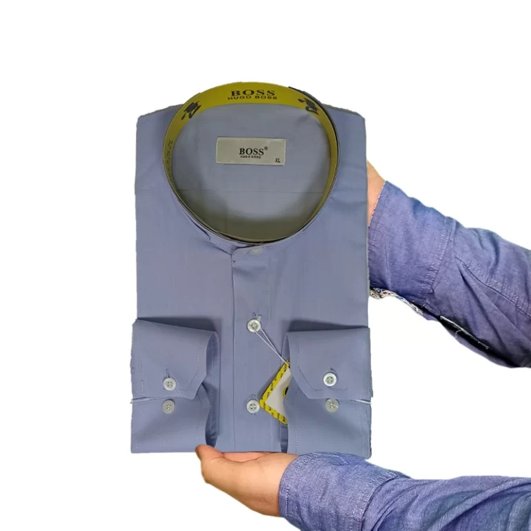 پیراهن مردانه آستین بلند مدل یقه دیپلمات آرو رنگ آبی