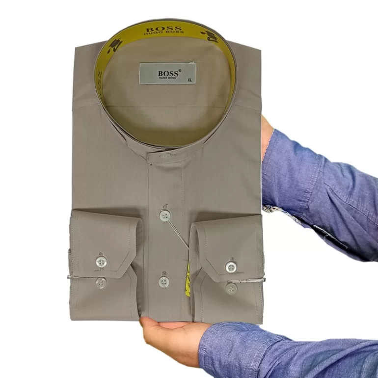 پیراهن مردانه آستین بلند مدل یقه دیپلمات آرو رنگ کرمی