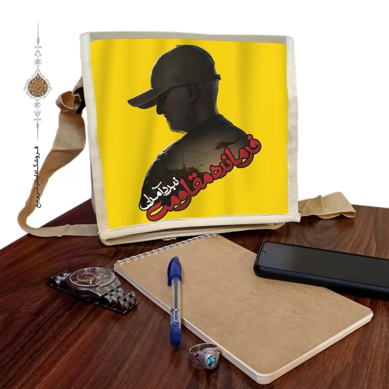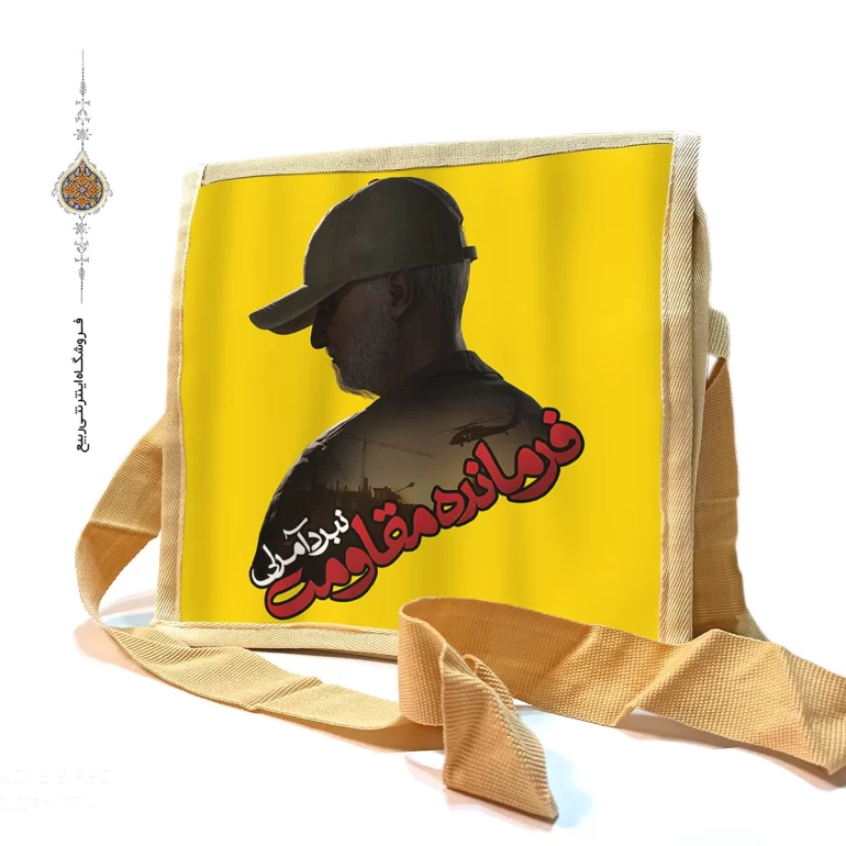 کیف دوشی برزنتی فرمانده مقاومت با طرح حاج قاسم سلیمانی زمینه زرد