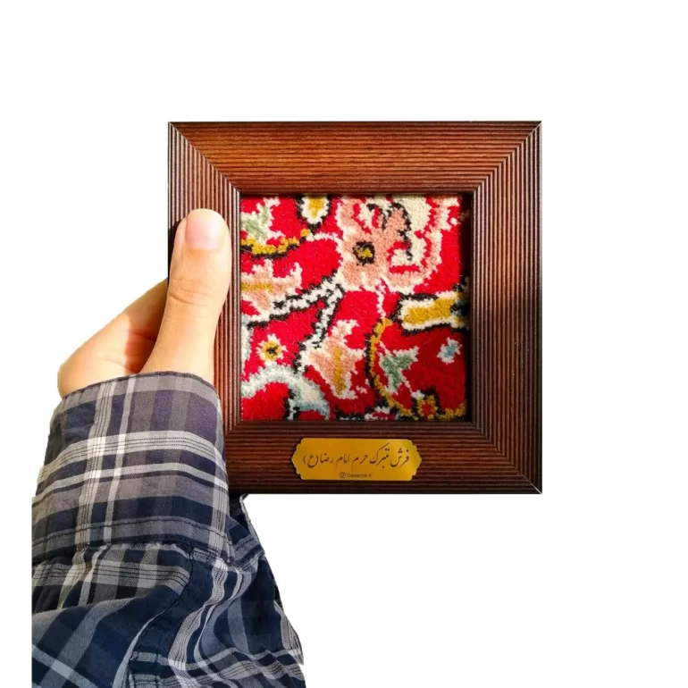 قاب فرش حرم امام رضا(ع) می‌تواند هر محیطی را دلنشین تر و فضا را با عطر حرم ملکوتی امام هشتم روح بخشد. این قاب به صورت مربع و با ابعاد 15 در 15 سانتی متر می‌باشد. جنس این قاب pvc است و مدل فرش آن مطابق با عکسی که در حال نمایش است نخواهد بود و به صورت گوناگون عرضه خواهد شد.