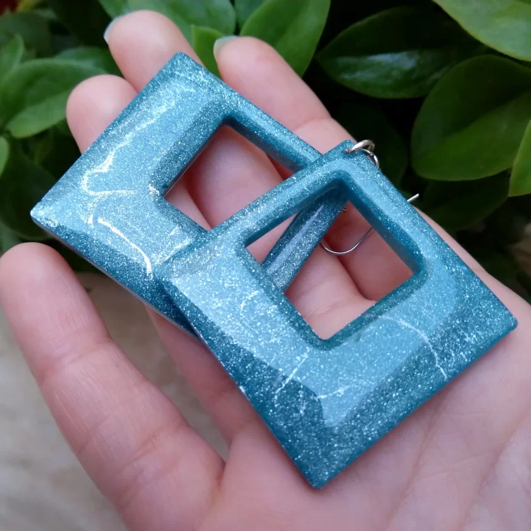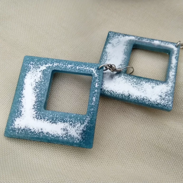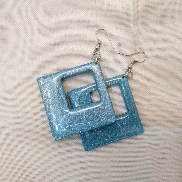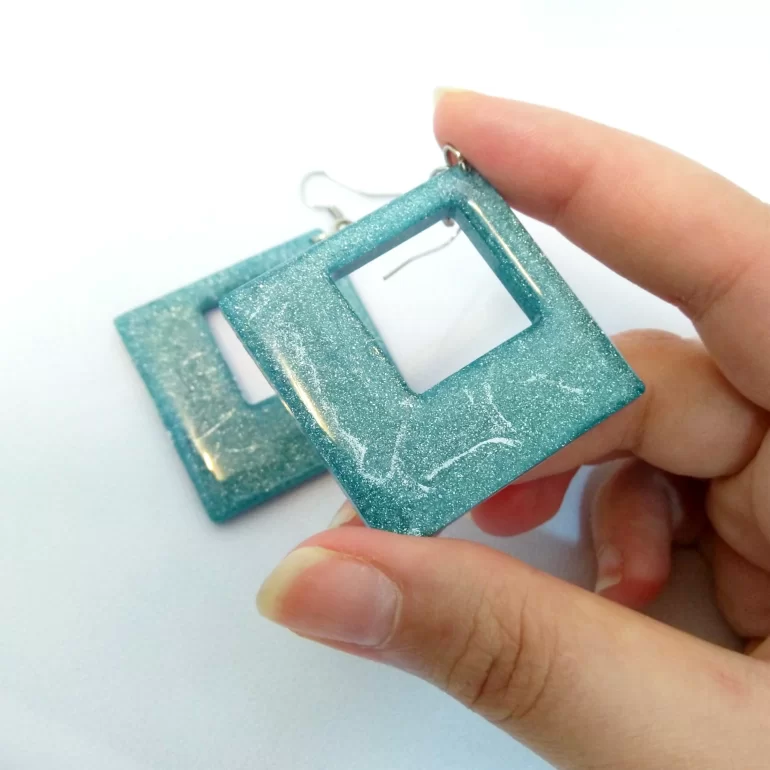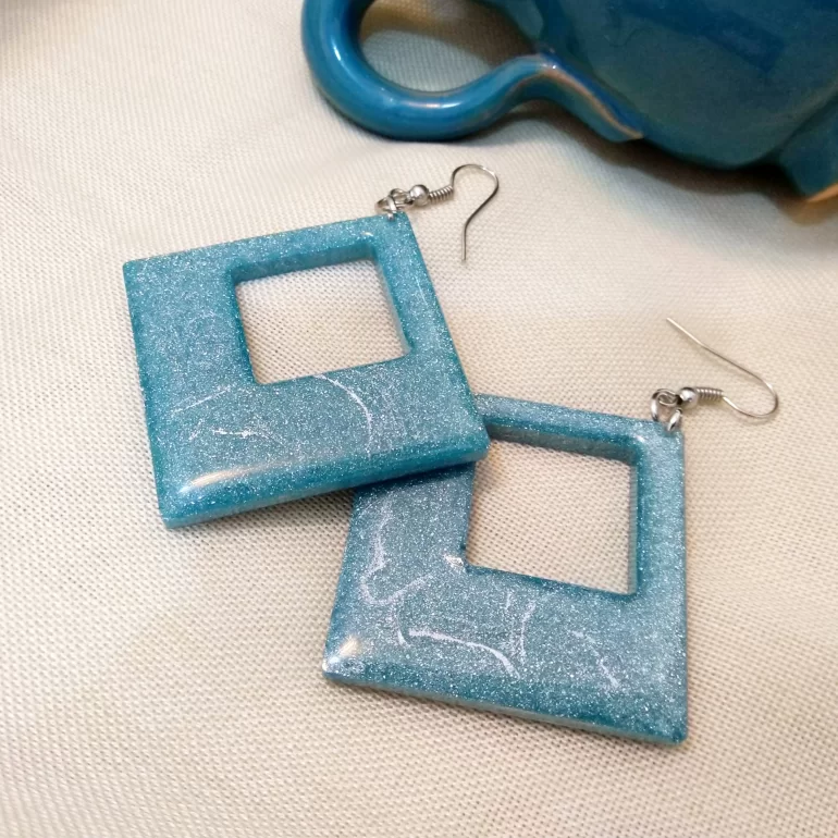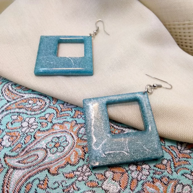 گوشواره رزینی مربع فیروزه ای دخترانه