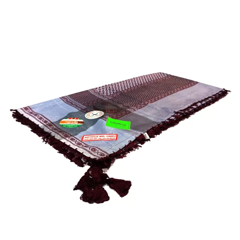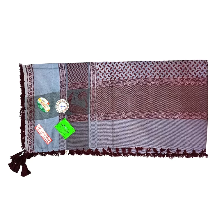 چفیه عمانی طوسی کبود با ریشههای سرخ طرح یاسمین