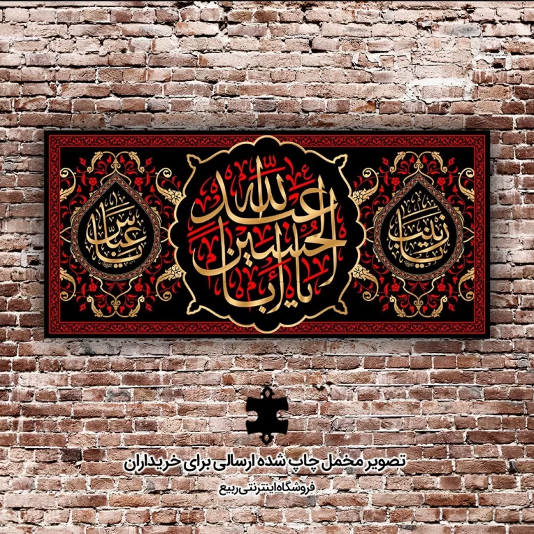 این کتیبه از جنس پارچه مخمل می باشد. چاپ صورت گرفته روی این محصول، از طریق دستگاه های تمام دیجیتال سابلیمیشن صورت گرفته است. این محصول در اثر شستوشو دچار رنگ پریدگی نمیگردد، بر اثر تا خوردن سفید نمیشود و رنگ های آن به دلیل وجود چاپ باکیفیت هیچگاه از بین نمیرود. این کتیبه دارای ابعاد مختلف است که از طریق منو قابل انتخاب است. برای تمام کتیبههای فروشگاه ربیع ریشه دوزی انجام شده است.