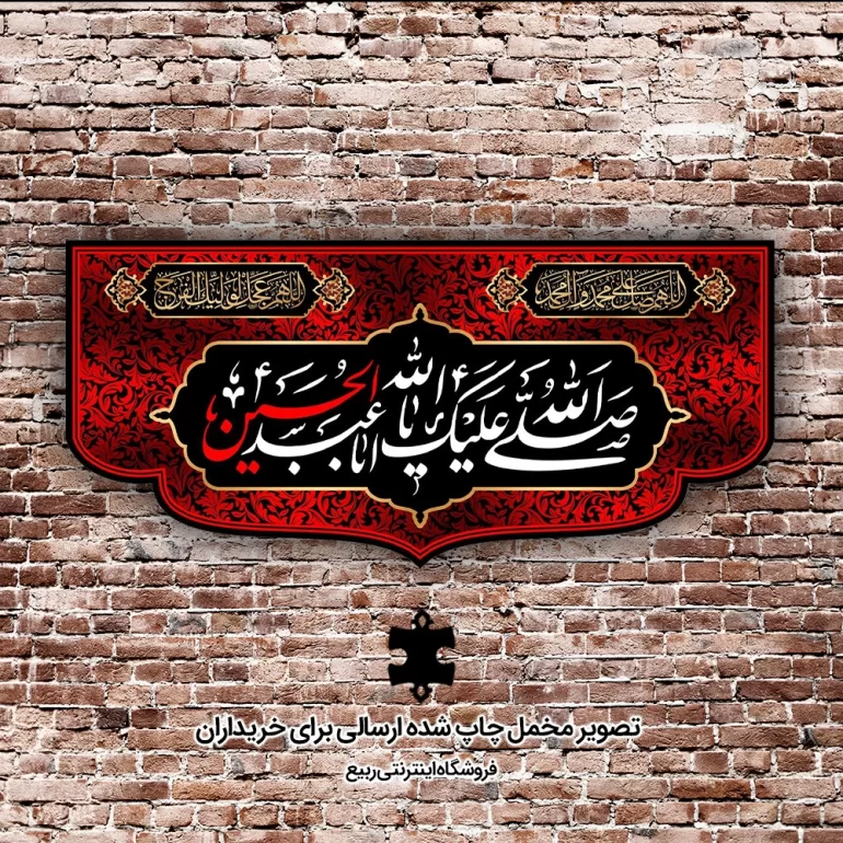 این کتیبه از جنس پارچه مخمل می باشد. چاپ صورت گرفته روی این محصول، از طریق دستگاه های تمام دیجیتال سابلیمیشن صورت گرفته است. این محصول در اثر شست‌وشو دچار رنگ پریدگی نمیگردد، بر اثر تا خوردن سفید نمیشود و رنگ های آن به دلیل وجود چاپ باکیفیت هیچگاه از بین نمیرود. این کتیبه دارای ابعاد مختلف است که از طریق منو قابل انتخاب است. برای تمام کتیبه‌های فروشگاه ربیع ریشه دوزی انجام شده است.