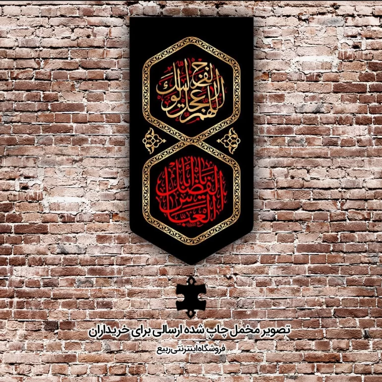این کتیبه از جنس پارچه مخمل می باشد. چاپ صورت گرفته روی این محصول، از طریق دستگاه های تمام دیجیتال سابلیمیشن صورت گرفته است. این محصول در اثر شستوشو دچار رنگ پریدگی نمیگردد، بر اثر تا خوردن سفید نمیشود و رنگ های آن به دلیل وجود چاپ باکیفیت هیچگاه از بین نمیرود. این کتیبه دارای ابعاد مختلف است که از طریق منو قابل انتخاب است. برای تمام کتیبههای فروشگاه ربیع ریشه دوزی انجام شده است.