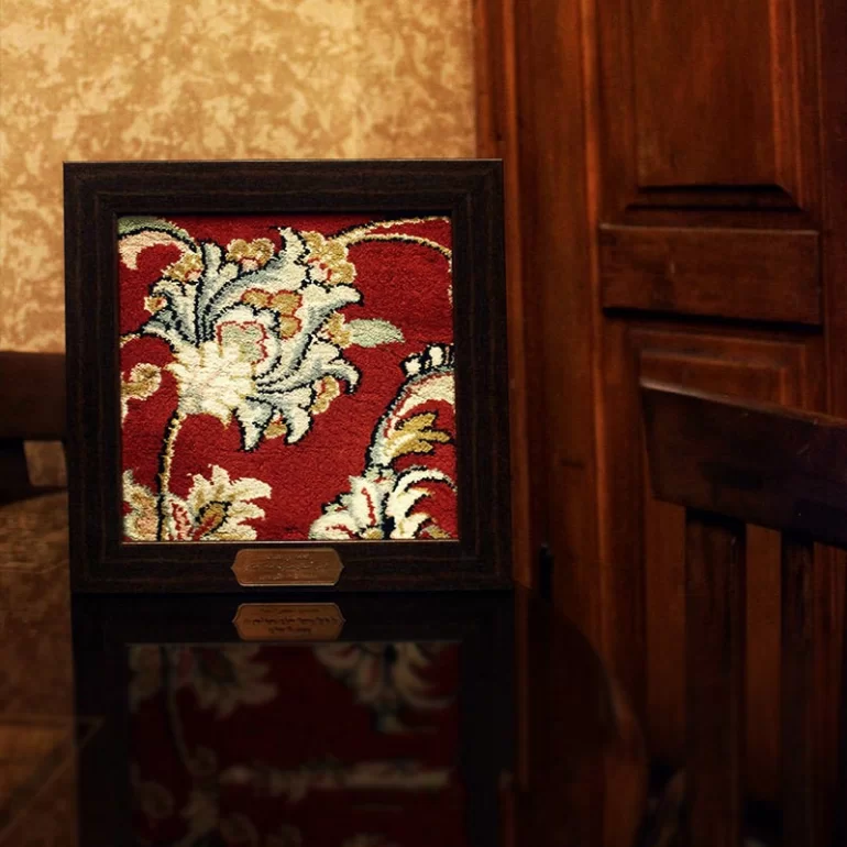 این محصول قطعه ای از فرشهای متبرک و قدیمی حرم حضرت علی بن موسی الرضا علیه السلام میباشد. جنس قاب این محصول PVC بوده و ابعاد دور تا دور قاب 20x20 سانتی متر میباشد.