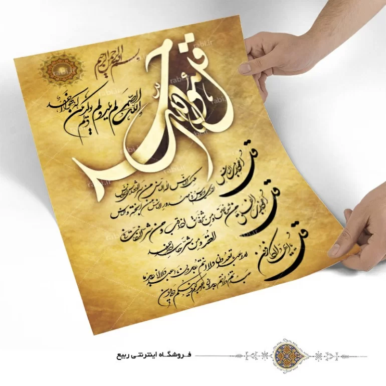 این پوستر زیبا از مواد اولیه بسیار باکیفیت و در لابراتوار پیشرفته تولید می شود. طرح چاپ شده روی پوستر از کیفیت رنگی و وضوح بالایی برخوردار است و یک لایه روکش محافظ مخصوص جهت ماندگاری روی آن قرار دارد. نصب این پوستر روی انواع سطوح افقی و عمودی بسیار آسان بوده و با انواع چسب نواری، منگنه و پونز قابل انجام است.