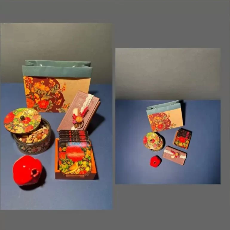 پک یلدا، این پک شامل دیوان حافظ، جعبه آجیل، زیر لیوانی و ساک دستی نفیس میباشد.
