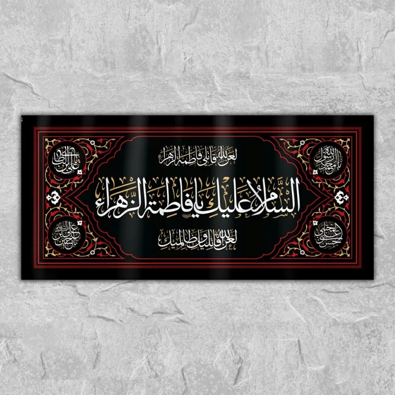 این کتیبه مذهبی، از بهترین پارچه مخمل تولید شده و دارای ریشه دوزی می باشد. طرح «السلام علیک یا فاطمه الزهرا» به روش چاپ سابلیمیشن روی این کتیبه نقش بسته است که دارای کیفیت و جزئیات بالایی است. این کتیبه نفیس برای استفاده در هیئت، منزل و محل کار مناسب می باشد.
