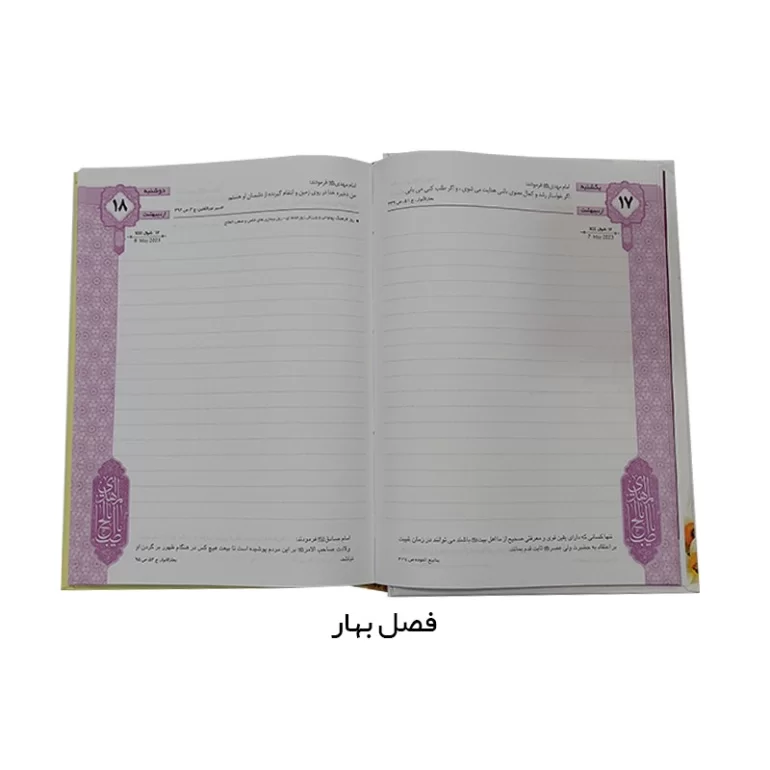 سرسید و سالنامه سال 1402 با نام انتظار؛ سالنامه ای کاربردی که میتوانید راحت حمل کنید و از زیبایی اش لذت ببرید. در این سالنامه هر صفحه مربوط به یک روز است و در هر صفحه علاوه بر روایات در باره امام زمان(عج)، از ادعیه و کتب دیگر هم در همین زمینه، بخش هایی آورده شده است. در انتهای سالنامه نیز ادعیه و زیارتی مثل زیارت عاشورا، زیارت آل یاسین و دعای عهد وجود دارد.