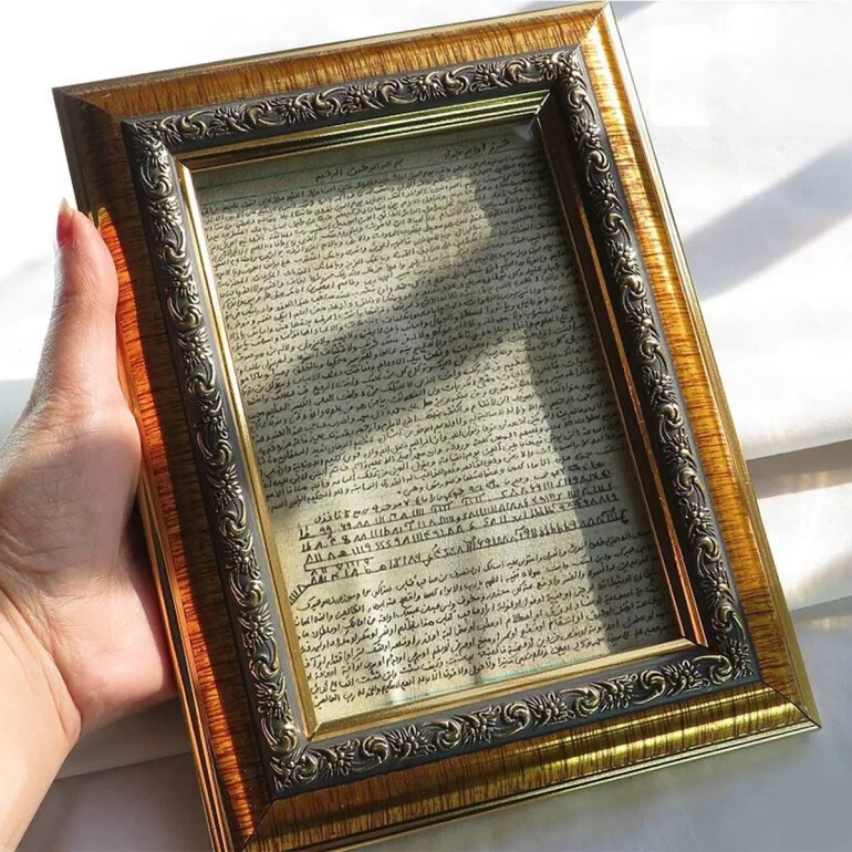 تابلو حرز امام جواد (ع) بر پوست آهو سایز 15x20 سانتی متر کد 130420
