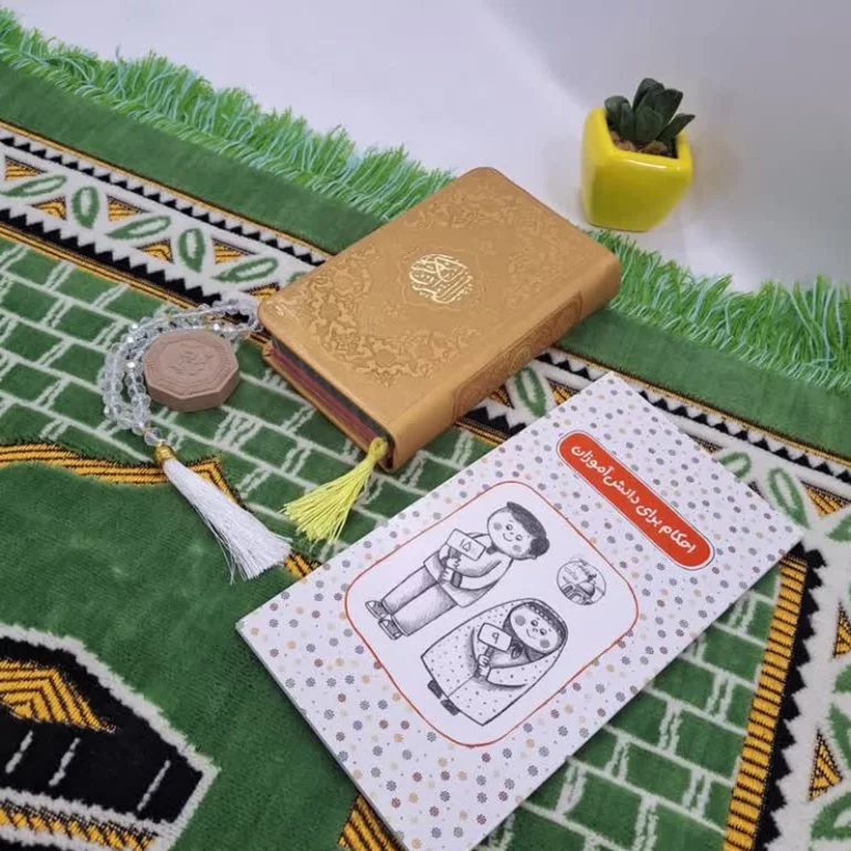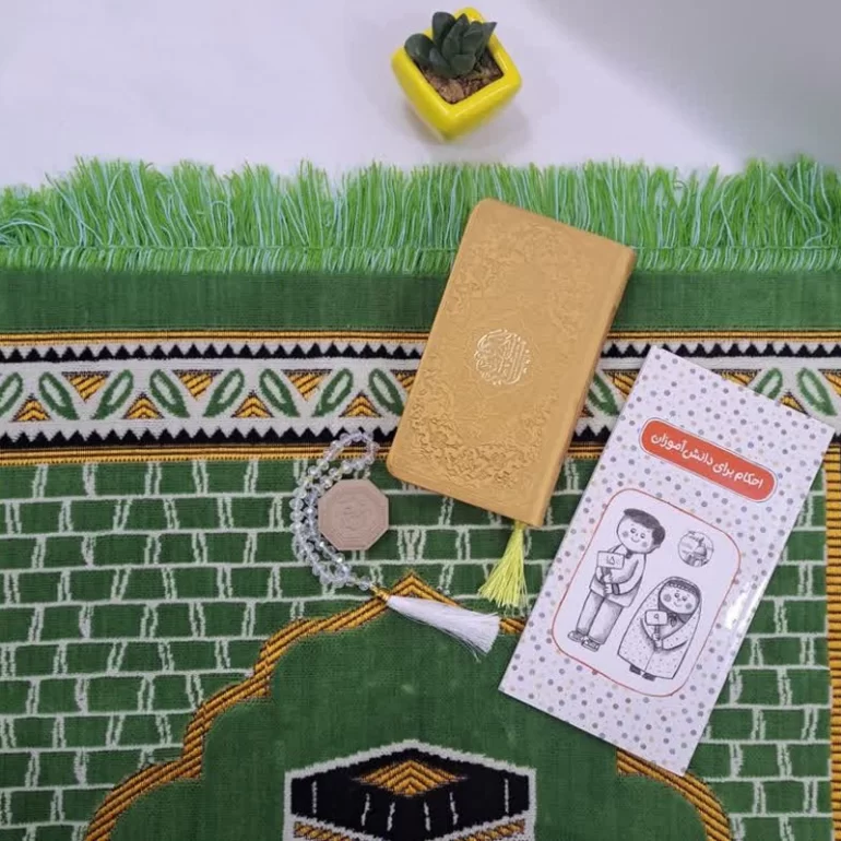 محتویات این محصول: سجاده مخمل عرض 70 سانتی متر، قرآن پالتویی، کتاب احکام برای دانش آموزان، مهر و تسبیح 33 تایی می باشد.
