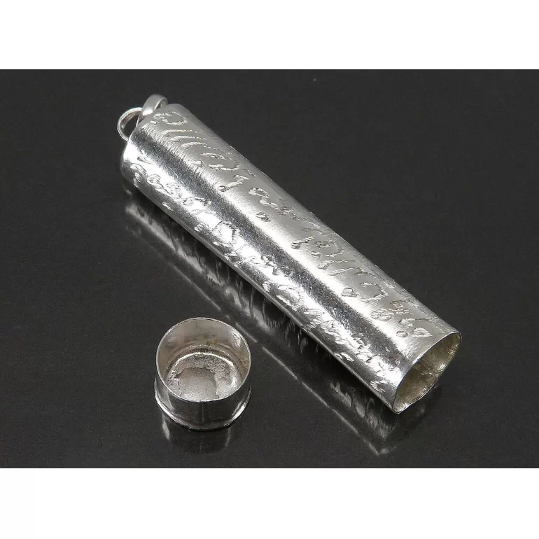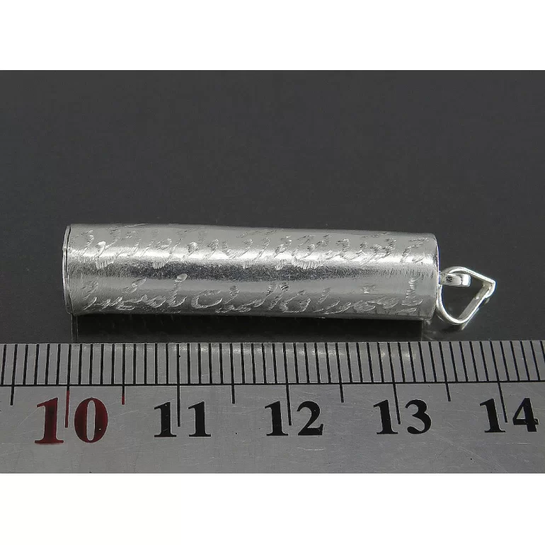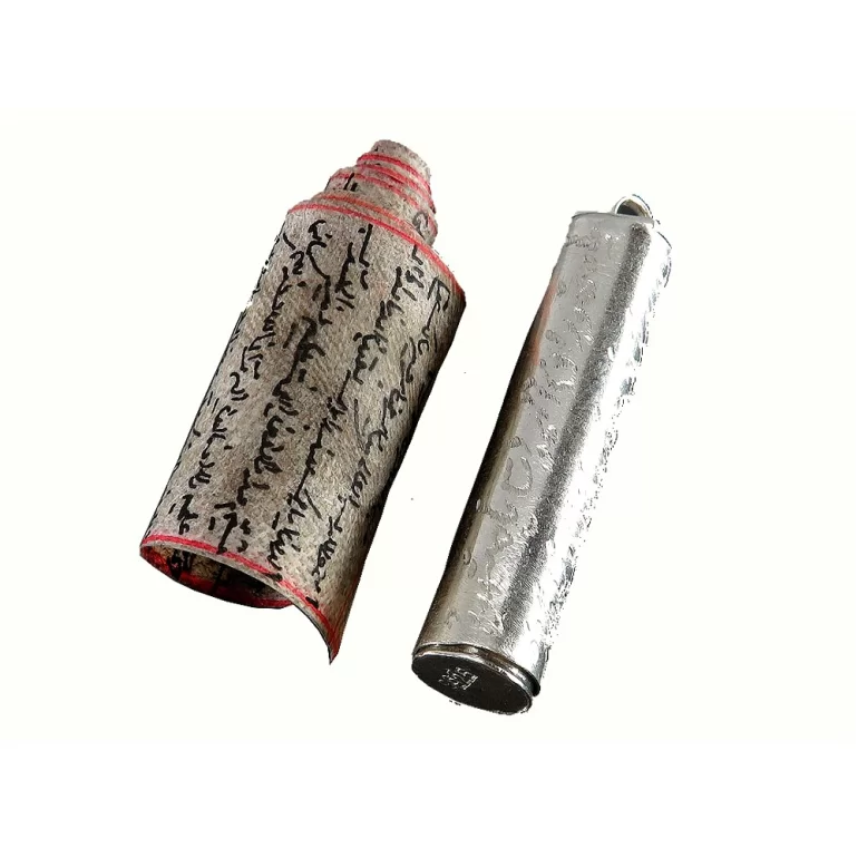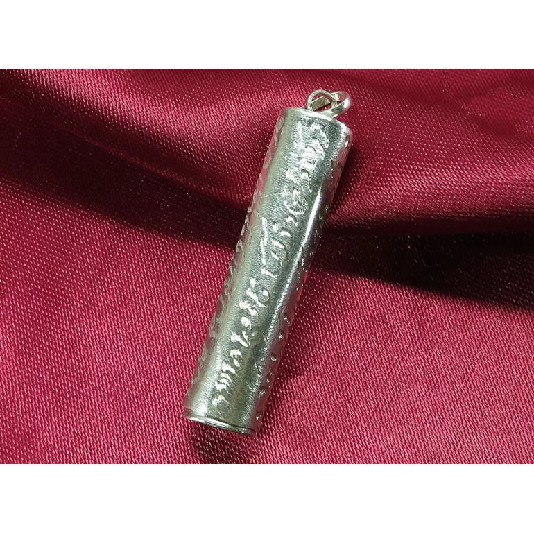 حرز امام جواد نوشته شده بر پوست آهو به همراه جادعایی نقره 925 عیار که به حالت گردن آویز است. این محصول در ابعاد 4 سانتی متر و با وزن 2 گرم می باشد.
