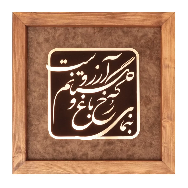 تابلو معرق مس با مصرع زیبای “بنمای رخ که باغ و گلستانم آرزوست”، نه تنها یک اثر هنری زیبا و ارزشمند است، بلکه نمادی از فرهنگ و هنر اصیل ایرانی است که میتواند جلوهای از اصالت و زیبایی را به هر فضایی هدیه دهد. با سفارش این محصول، شما نه تنها از یک اثر هنری بینظیر بهرهمند خواهید شد، بلکه از هنرمندان ایرانی نیز حمایت میکنید. این تابلو با قابلیت سفارشیسازی و بستهبندی شیک، انتخابی بینظیر برای هدیه و تزئین فضاهای مختلف است.