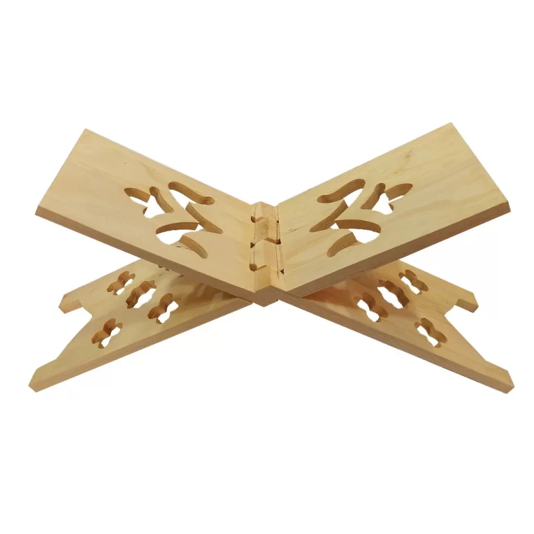 رحل قرآن چوبی تاشو طرح دار رنگ چوب کد 1