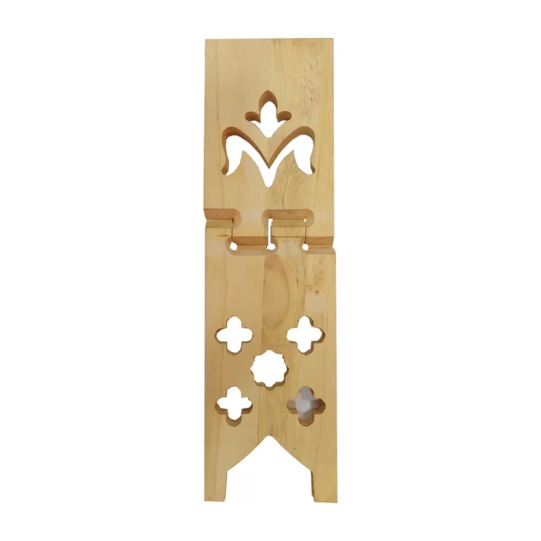 رحل قرآن چوبی تاشو طرح دار رنگ چوب، در ابعاد 42*12 سانتیمتر تولید شده و مناسب برای قرآن و ادعیه در ابعاد وزیری است، همچنین بسیار سبک و قابل حمل میباشد.