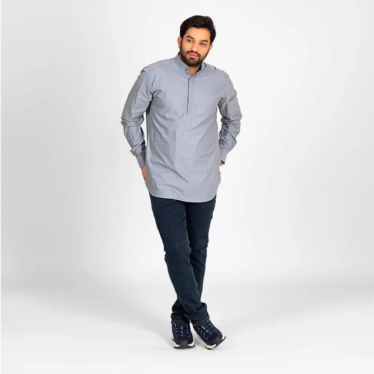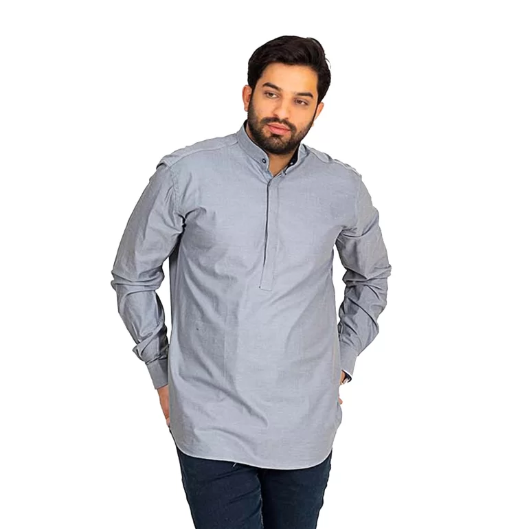پیراهن مردانه آستین بلند مدل طلبگی کد PC12161 رنگ طوسی