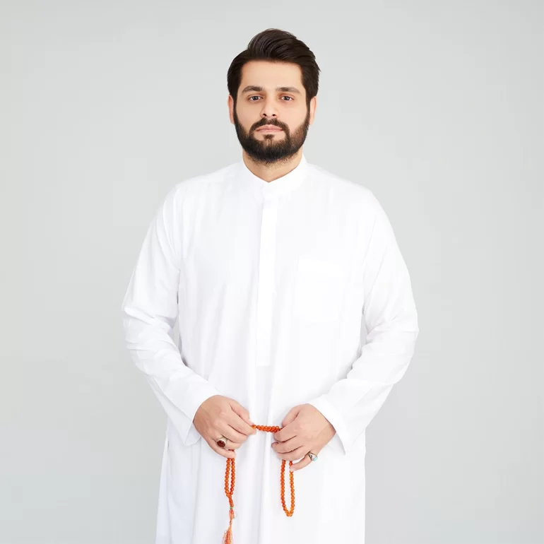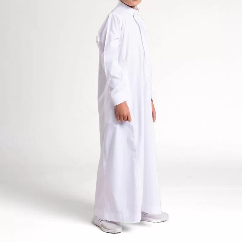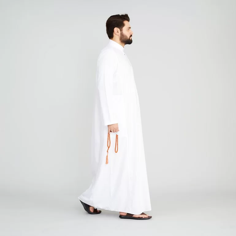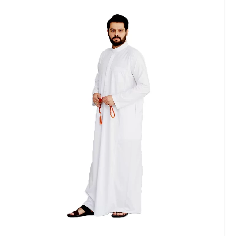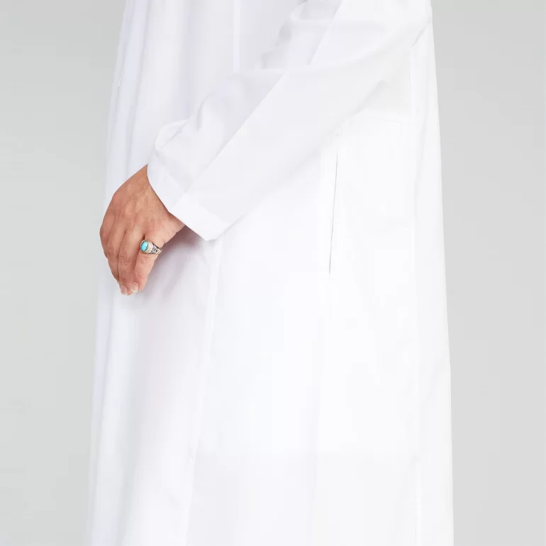 دشداشه عربی مردانه رنگ سفید که جنس این محصول با پارچه تترون درجه یک ایرانی عرضه می‌شود. این نوع پارچه بسیار لطیف و خنک بوده و برای فصل تابستان مناسب می‌باشد. همچنین این پیراهن، دارای قواره کلاسیک است و از نوع سه دکمه تولید می شود.