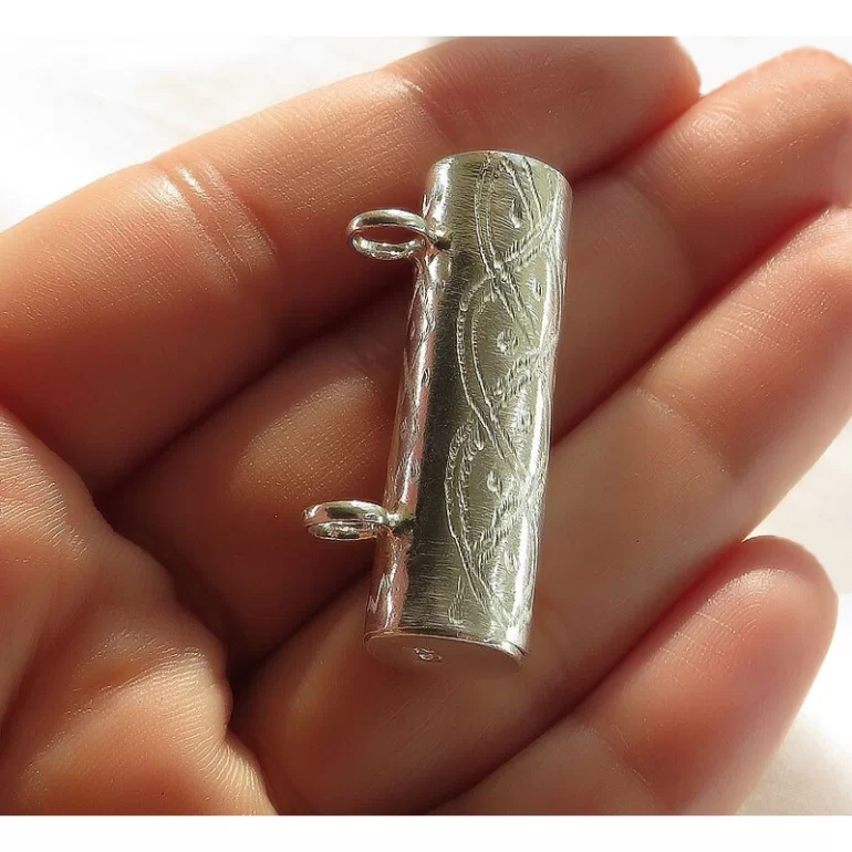 جادعایی نقره بازشو استوانه که در ابعاد 3.5 سانتیمتر و با وزن حدود 4 گرم میباشد. این جادعایی با نقره 925 عیار ساخته و پرداخته شده است. و مناسب برای نگهداری و مراقبت از حرز شما جهت جلوگیری از مفقود شدن دعا میباشد.
