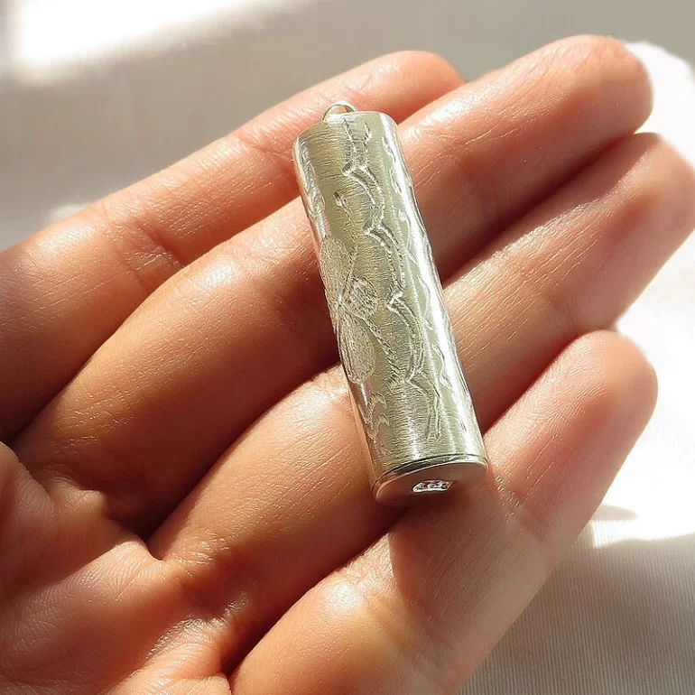 جادعایی نقره باز شو کهدر ابعاد 4 سانتیمتر و با وزن حدود 4 گرم میباشد. این جادعایی با نقره 925 عیار ساخته و پرداخته شده است. و مناسب برای نگهداری و مراقبت از حرز شما جهت جلوگیری از مفقود شدن دعا میباشد.
